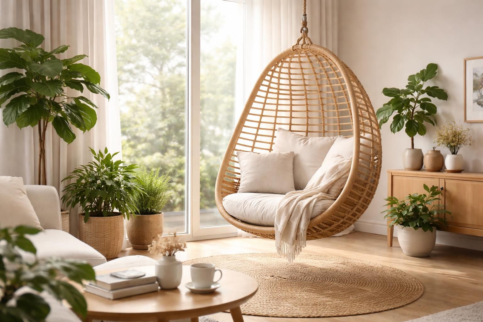8. Fauteuil Suspendu Naturel en Jute