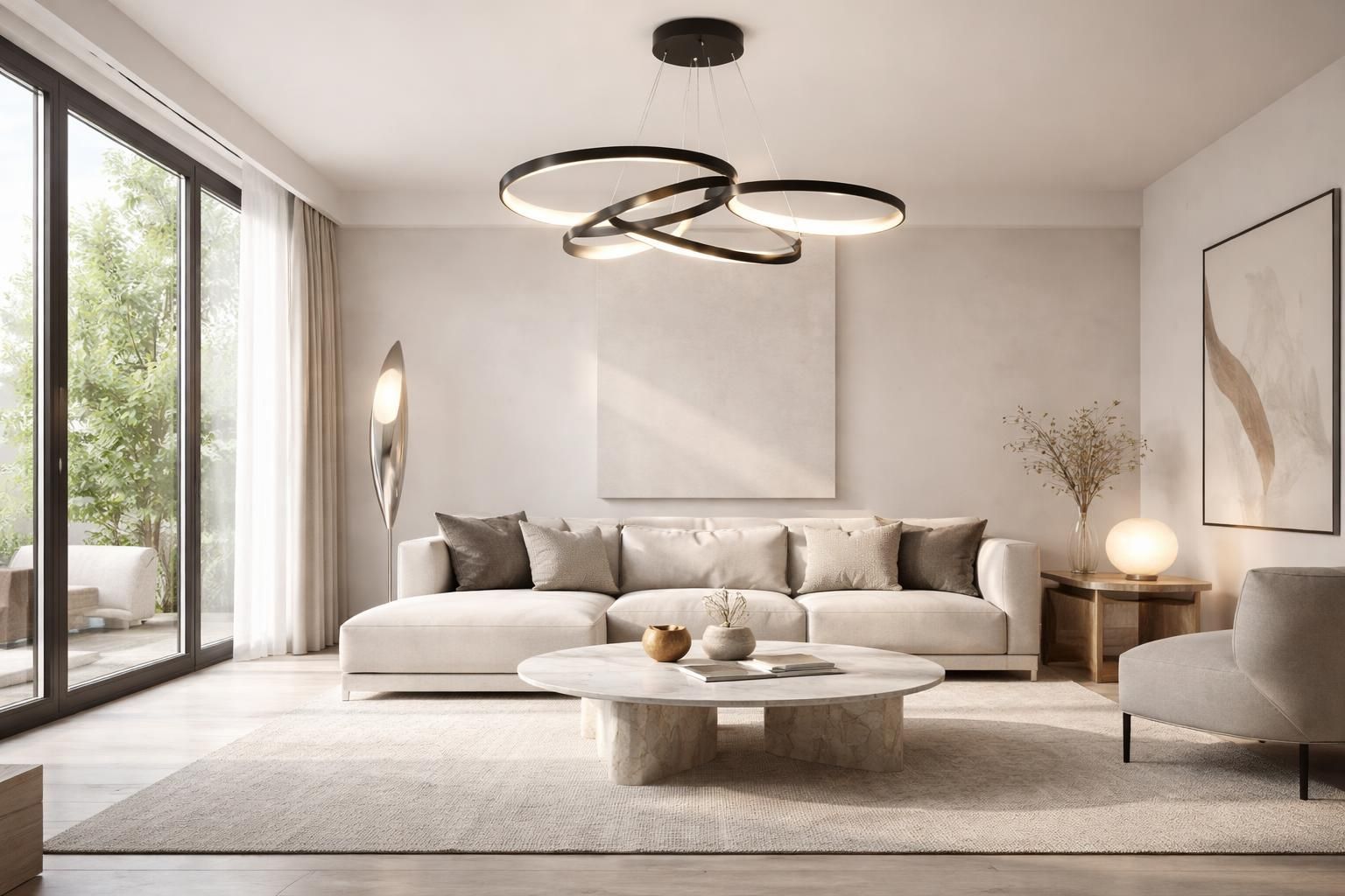 Le salon, souvent le coeur de la maison, nécessite un éclairage à la fois chaleureux et structurant. Les suspensions XXL se démarquent par leur capacité à attirer l’attention, tout en offrant une lumière diffuse efficace pour créer une atmosphère conviviale. Associées à des lampadaires design placés dans les coins ou près des canapés, ces options permettent de moduler l’éclairage selon les besoins de chaque moment.