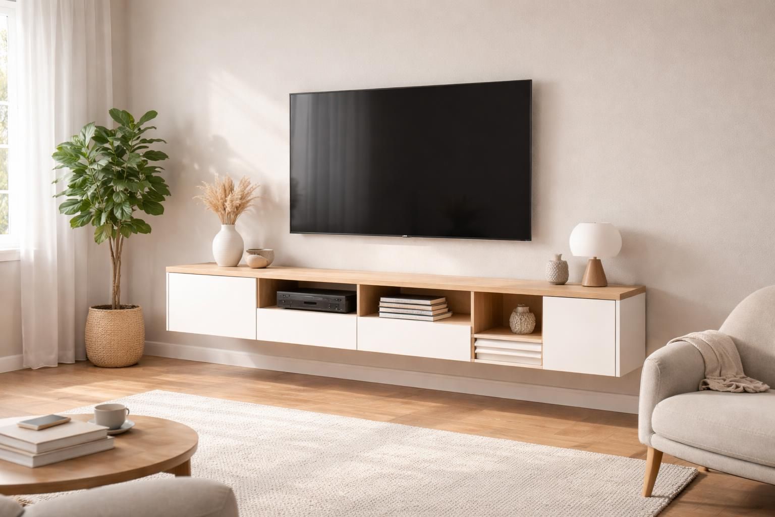 Meuble TV suspendu Ikea Hack : créez un banc multimédia aérien et moderne