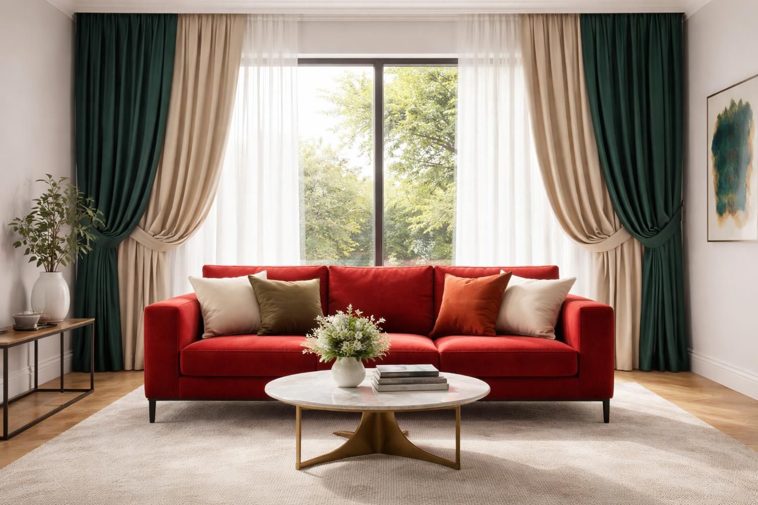 Rideaux et canapé rouge : quelles associations de couleurs pour vos fenêtres ?