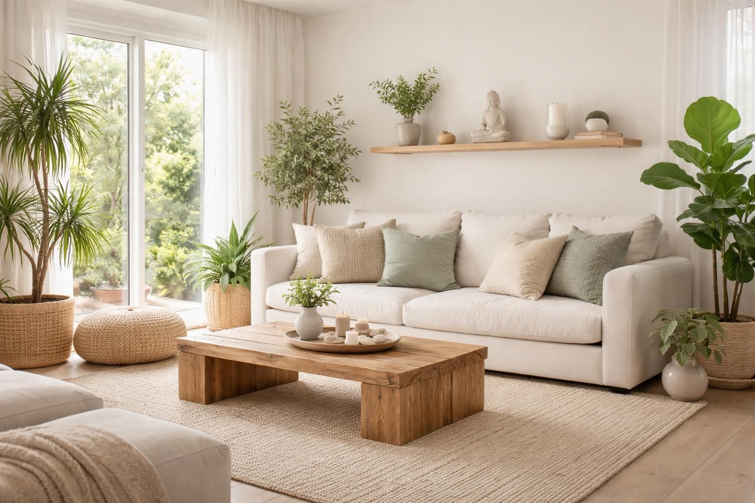 Si vous avez un jardin ou un balcon, intégrer cette nature à votre espace de vie est une excellente idée. En plaçant quelques plantes d’extérieur à l’intérieur, vous créez une transition harmonieuse entre l’intérieur et l’extérieur. De petites fontaines ou statues de bouddha peuvent également renforcer cette atmosphère zen, tout en apportant une touche esthétique.